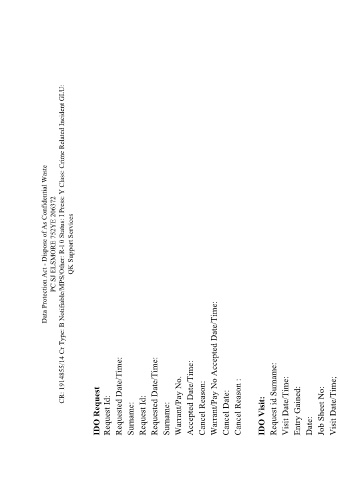 IDO Request Request Id: Requested Date/Time: Surname: Request Id: Requested Date/Time: Surname: Warrant/Pay No. Accepted Date/Time: Cancel Reason: Warrant/Pay No Accepted Date/Time: Cancel Date: Cancel Reason : IDO Visit: Request id Surname: Visit Date/Time: Entry Gained: Date: Job Sheet No: Visit Date/Time; Entry
