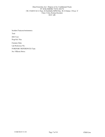 CR:1914855/14 Cr Type: B Notifiable/MPS/Other: R-10 Status: I Press: Y Class: Crime Related Incident