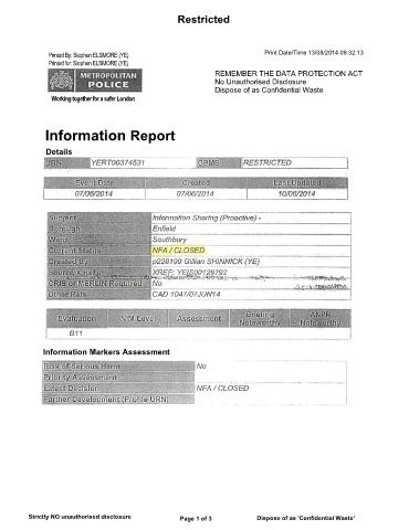 Strictly NO unauthorised disclosure Page 2 of 3 Dispose of as 'Confidential Waste'