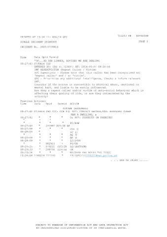 INCIDENT No. 3252 entered at 10:07 on 07J.UN14 by CHS/CHS in CCC/IR