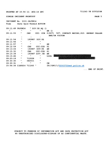 INCIDENT No. 3319 entered at 09:39 on 08JUN14 by CHS/CHS in CCC/IR