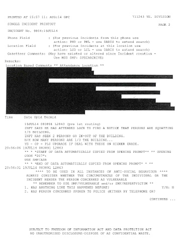 ^274YE. GROUP OF 10-20 SQUATTERS INSIDE.POLICE ENTERED TO MAKE SURE NO