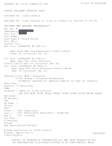3. If the answer to 2 is 'Yes' when were police called