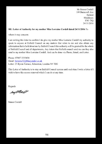 This Letter of Authority is to stay on Enfield Council system until such time I write a letter if I
