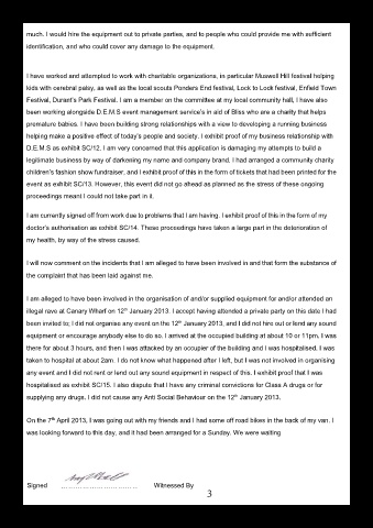 illegal rave at Canary Wharf on 12 January 2013. I accept having attended a private party on this date I had