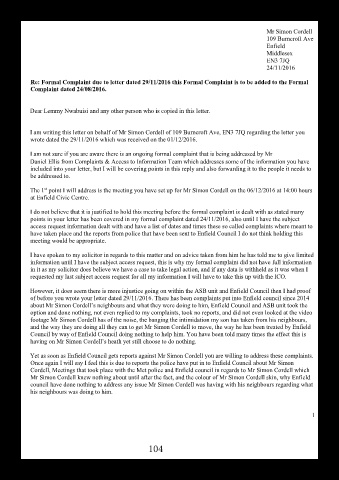 Cordell, Meetings that took place with the Met police and Enfield council in regards to Mr Simon Cordell which