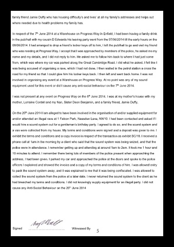 and/or attended an illegal rave at 1 Falcon Park, Neasden Lane, NW10. I had been contacted and asked if I