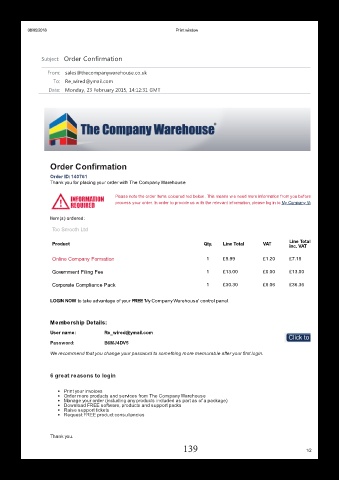 process your order. In order to provide us w ith the relevant information, please log in to My Company W