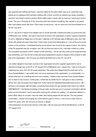 attended an illegal rave on the 9 to 10 August 2014 at Millmarsh Lane. I dispute this. I was not involved in