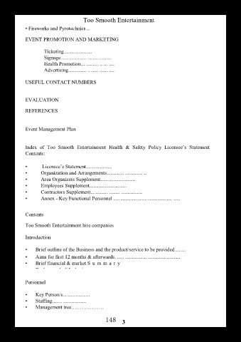 Index of Too Smooth Entertainment Health & Safety Policy Licensee’s Statement