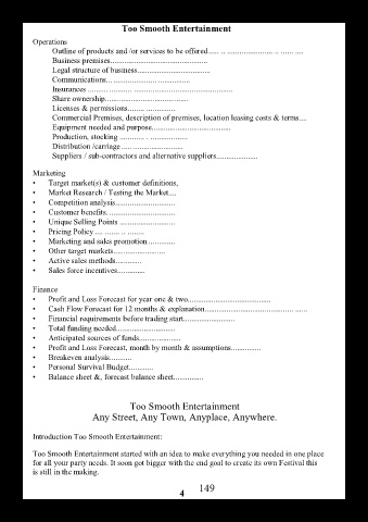 Outline of products and /or services to be offered ..... .. ...................... .. ...... ....