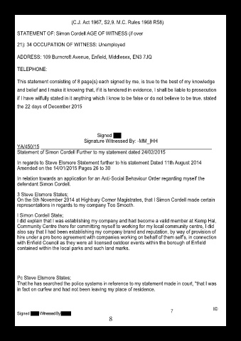 Statement of Simon Cordell Further to my statement dated 24/02/2015