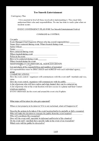 EVENT CONTINGENCY PLAN FOR Too Smooth Entertainment Festival