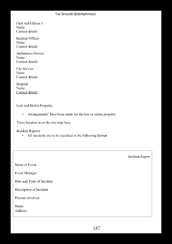 • All incidents are to be recorded in the following format:
