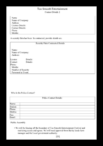 Security Firm Contracted Details