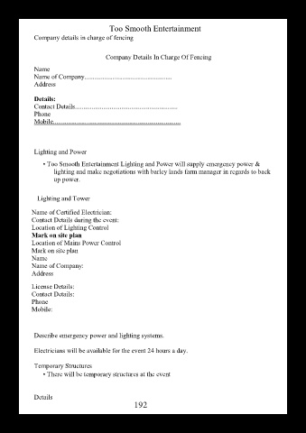 • Too Smooth Entertainment Lighting and Power will supply emergency power &