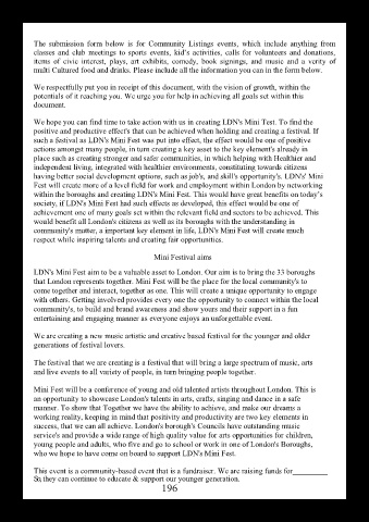 within the boroughs and creating LDN's Mini Fest. This would have great benefits on today’s