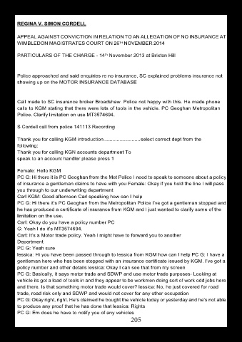 Police approached and said enquiries re no insurance, SC explained problems insurance not