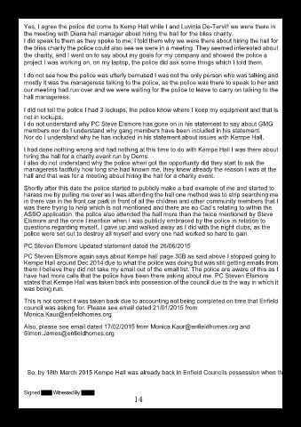 PC Steven Elsmore again says about Kempe hall page 30B as said above I stopped going to