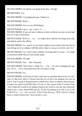 Cordell he is...” or “...isn’t covered.” If the Crown then say, “Well, what he’s telling