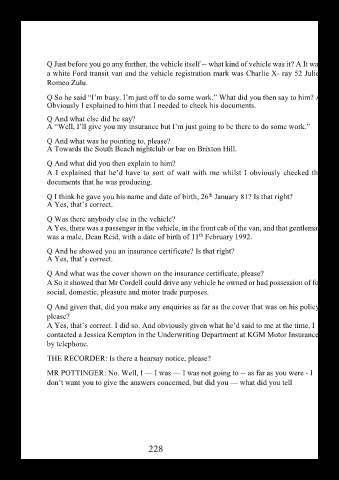 A So it showed that Mr Cordell could drive any vehicle he owned or had possession of for