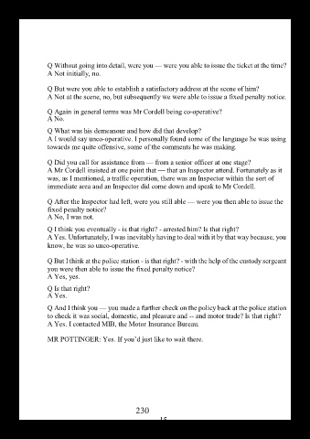 immediate area and an Inspector did come down and speak to Mr Cordell.