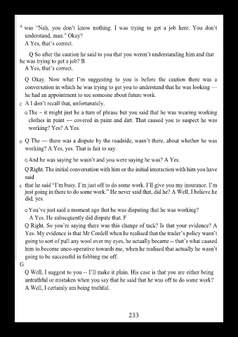 A was “Nah, you don’t know nothing. I was trying to get a job here. You don’t