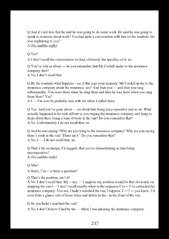 Q By the roadside what happens - see if this jogs your memory. Mr Cordell spoke to the