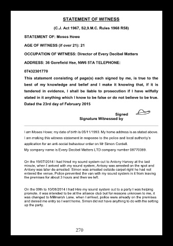 I am making this witness statement in response to the police and local authority’s