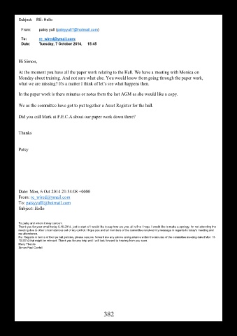 At the moment you have all the paper work relating to the Hall. We have a meeting with Monica on
