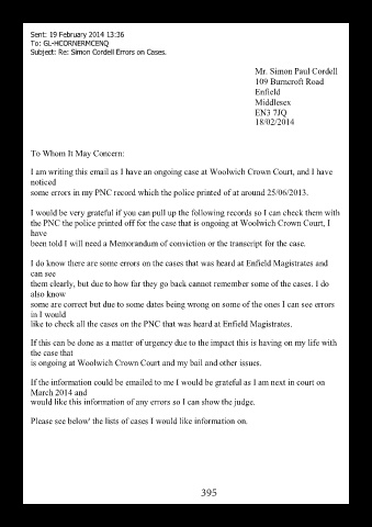 I do know there are some errors on the cases that was heard at Enfield Magistrates and