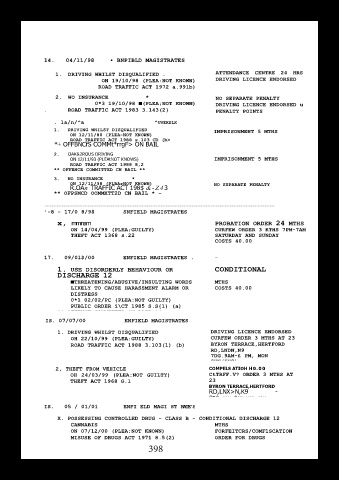 0*3 19/10/98 ■(PLEA;NOT KNOWN) DRIVING LICENCE ENDORSED u