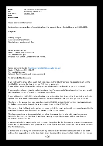I attach the memorandum of conviction from the case of Simon Cordell heard on 03.03.2008,