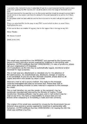 faster than updating the PNC records and I would be able to show the Judge at Woolwich crown