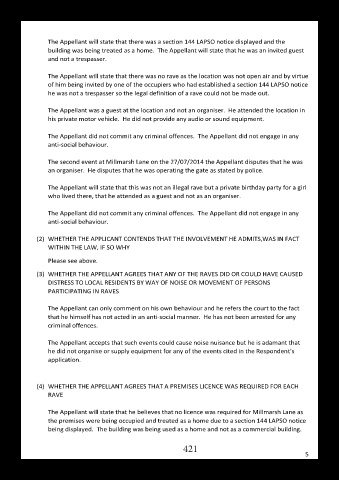 The Appellant will state that this was not an illegal rave but a private birthday party for a girl