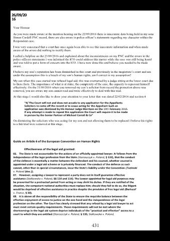 On dismissing the solicitors who was acting for my son and not allowing them to be replaced I believe his rights