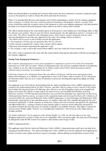 action would then make the occupiers aware of the intention to seize noise making equipment, with the potential
