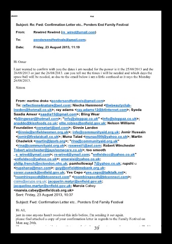 Subject: Re: Fwd: Confirmation Letter etc.. Ponders End Family Festival