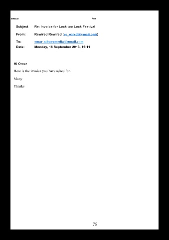 3(W2U1b Print Subject Re: Invoice for Lock too Lock Festival From: Rewired Rewired (re_wired@ymaii.com) To: omar.niburumedia@gmail.com; Date: Monday, 16 September 2013, 16:11 Hi Omar Here is the invoice you have asked for. Many Thanks 75
