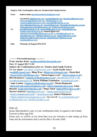 Subject: Fwd: Confirmation Letter etc. Ponders End Family Festival