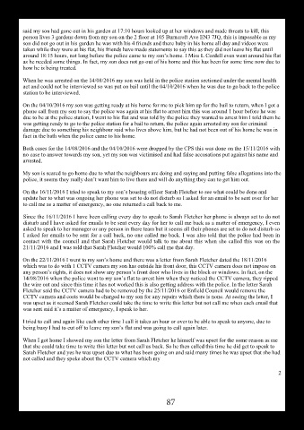 On the 22/11/2016 I went to my son’s home and there was a letter from Sarah Fletcher dated the 18/11/2016