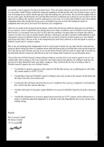 I feel at this time Enfield Council is doing nothing to help my son they don’t even want to speak to me so I can