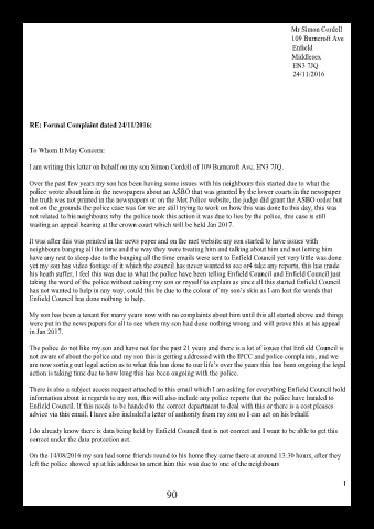 his heath suffer, I feel this was due to what the police have been telling Enfield Council and Enfield Council just
