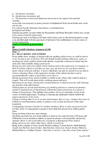 c. The summary of anti-social behaviour acts set out in the request form attached