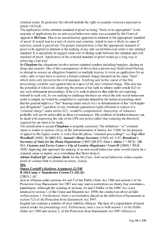 proof to be applied in relation to the making of any anti-social behaviour order is the criminal