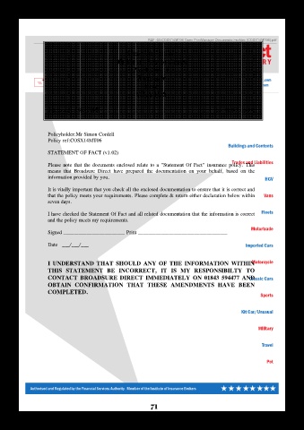 Please note that the documents enclosed relate to a "Statement Of Fact" insurance policy. This