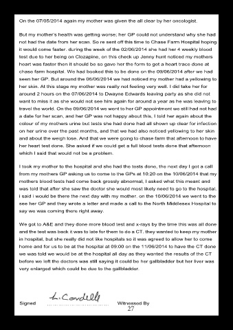 seen her GP. But around the 06/06/2014 we had noticed my mother had a yellowing to