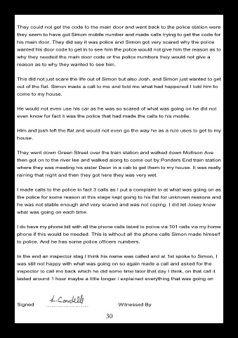 out of the flat. Simon made a call to me and told me what had happened I told him to