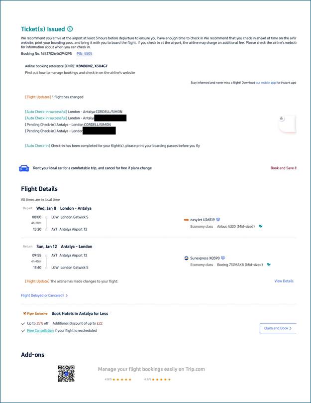 clarity of the information provided by Trip.com and the airlines. Key Issues