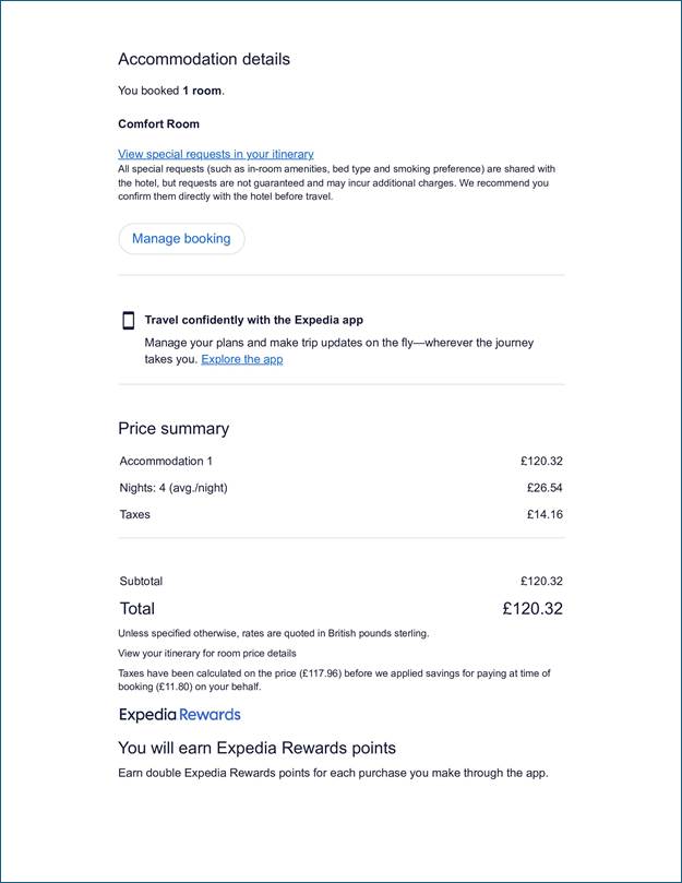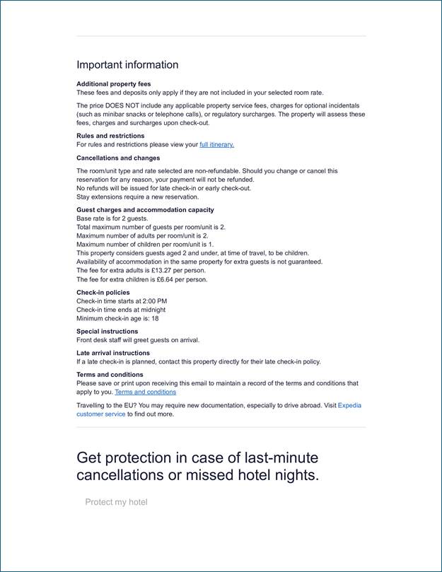 amount is separate from the taxes and fees, which are £71.80 per adult. When